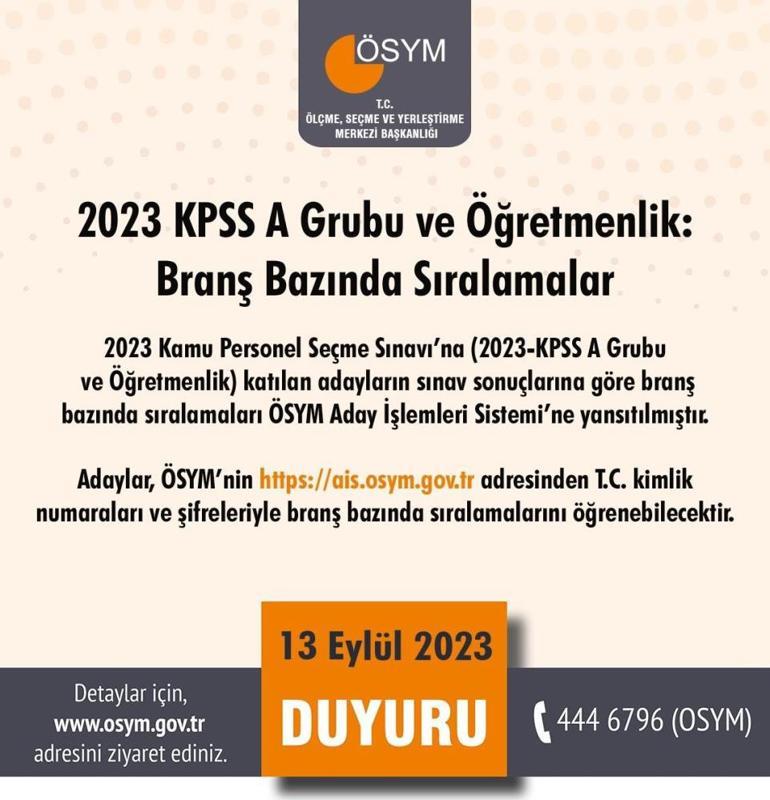 2023 KPSS A Kümesi ve Öğretmenlik kümesinde branş bazında sıralamalar açıklandı… İşte sonuç sorgulama ekranı