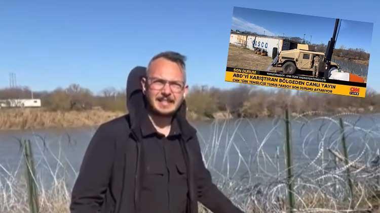 “Arkamda şu an bu gördüğünüz ırmak ABD ile Meksika’yı ayıran ırmak. Teksas Valisi bu inanılmaz tedbirleri almadan evvel müsaadesiz geçişleri görmüştük. Krize neden olan dikenli teller bunlar. Burada insanların eşyaları, aşağıda da mont gördüm. Bunların hepsi insanların kaçmaya çalışırken bıraktığı eşyalar. Büsbütün sıfır noktasındayız. Karşıda gördüğümde orada da askerler var. Bir tarafta ABD askerleri bir tarafta Meksika askerleri sonu koruyor. İnsan hayatını tehlikeye atan dikenli teller. Ondan ötürü bunların kaldırılması buyruğu verilmişti. Gerimde bir araç görüyorsunuz. Olağanda Irak’ta görürdük Afganistan’da görürdük. Hudutta misyon yapıyorlar. ABD’nin nasıl güvenlik tedbiri aldığını görmek çok kolay. Çok rahat buradan karşıdan karşıya geçebiliyorsunuz. Yüzbinlerce mültecinin ABD’ye kaçak olarak giriş yaptığını gördük. ABD askerleri burada hudutta güvenliği sağlıyor.