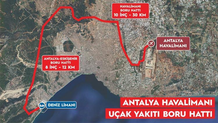 Uraloğlu, Antalya Havalimanının Kapasite Artırımına Yönelik Ek Yatırımlar kapsamında, havalimanında bulunan uçak yakıtı depolarının kontakları tamamlanarak havalimanına hizmet verecek boru çizgisinin devreye alındığını söz ederek, “Bu sayede uçak yakıtı olan Jet A1 yakıtı Antalya Deniz Terminalinde bulunan akaryakıt depolarından, 40 kilometre boru sınırı aracılığıyla havalimanımıza transferi gerçekleştirilecek” dedi.
