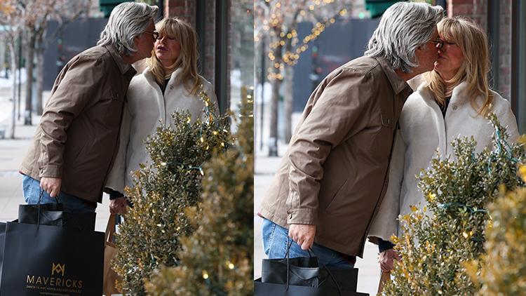 Yeni yıl tatili için Aspen’e giden çift yeniden el ele kol kola gezerken görüntülendi: Alışverişe çıkan Hawn ve Russell mağaza gezerken her fırsatta öpüşüp koklaşmayı da ihmal etmedi