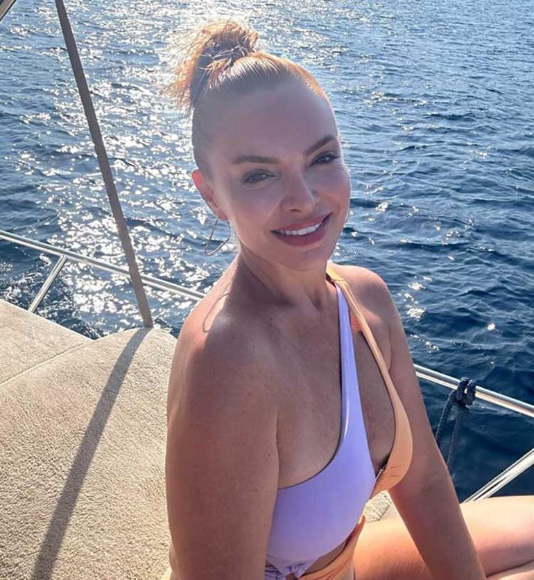 Arkadaşları ile teknede tatil yapan sanatçı, bikinili pozları ile modellere taş çıkarttı.
