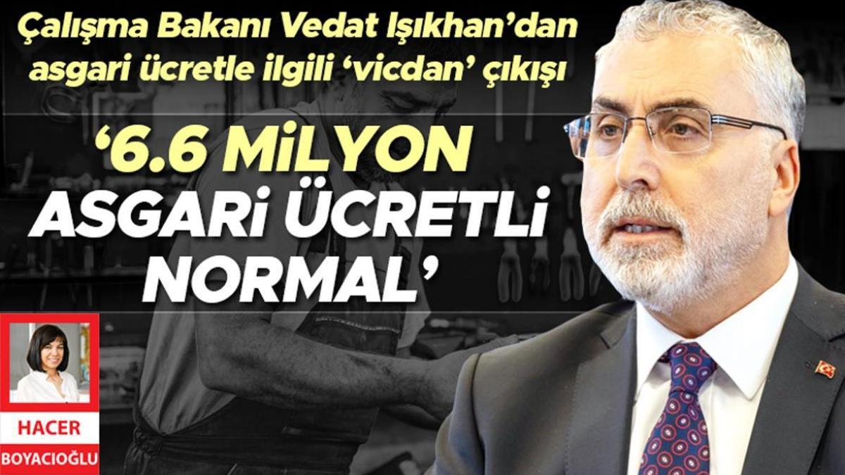 Çalışma ve Toplumsal Güvenlik Bakanı Vedat Işıkhan, taban fiyatın altında ödeme yapan patronlar için ‘vicdan’ çıkışı yaptı. Işıkhan,“Diyeceksiniz ki haklı olarak, minimum fiyatın altında da ödeyenler var lakin doğal ki vicdan burada çok önemli” diye konuştu. Işıkhan, Türkiye’de 6.6 milyon çalışanın taban fiyat aldığını ve bunun olağan olduğunu da kelamlarına ekledi. Yasal mevzuata nazaran Türkiye’de çalışanlara taban fiyatın altında ödeme yapılamıyor, bunun kontrolünü ise Çalışma Bakanlığı yapıyor.