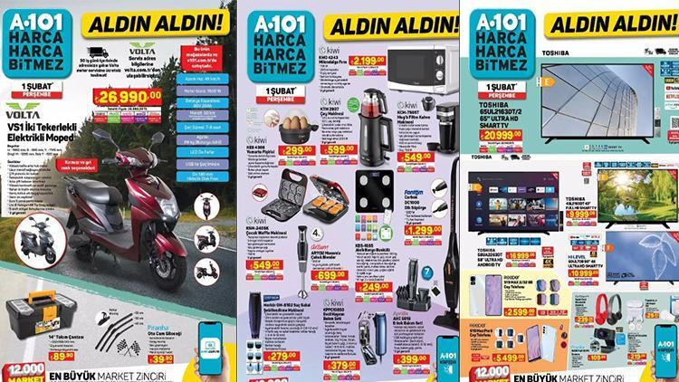 A101 aktüel 1 Şubat 2024 kataloğu raflarda yerini almaya hazırlanıyor. A101 online alışveriş sitesinden de eserler temin edilebiliyor. A101 aktüel eserler bu hafta da ağır ilgi görüyor. A101’de bu hafta; Toshiba 43′ Full HD Smart Tv 9.999 TL, HI-LEVEL 50′ 4K Ultra HD Smart Tv 10.999 TL, Reeder S19 Max Cep Telefonu 2.599 TL, Volta VS1 İki Tekerlekli Elektrikli Moped 26.990 TL’den satışa sunulacak. Pekala, A101’de bu hafta neler var? İşte, A101 aktüel eserler kataloğu 1 Şubat 2024 fiyat listesi…