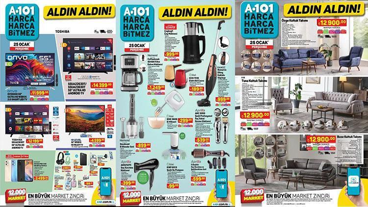 A101’de kampanyalar ve indirimler bu haftaya özel fiyatlarıyla raflarda olacak. 4 farklı televizyon 4.599 TL ile 14.399 TL ortasında fiyat etiketiyle satışa sunulacak. 128 GB Akıllı Cep Telefonu 3.499 TL, Bluetooth Kulaklık 239 TL olacak. Haftanın en çok araştırılan indirimlerinde ise elektronik mesken aletleri geldi. Dikey Kablolu Süpürge 999 tl, El Blender Seti 899 TL, Saç Kurutma Makinesi 399 TL olacak. Ayrıyeten Ezme Granit Tencere 349 TL, Karnıyarık Tencere 349 TL, 6 Kesim Tencere Seti 649 TL, Çelik Termos ise 249 TL’den müşterilerin beğenisine sunulacak. Farklı boyutlarda valiz çeşitleri ise 499 TL’den başlayan fiyatlarla reyonlarda olacak. Beyaz eşya eserlerinden çamaşır makinesi, bulaşık makinesi ve buzdolabı katalogda yer alan başka eserlerden oldu. Pekala A101’de bu hafta neler var? İşte, A101 Aktüel kataloğu 25 Ocak Perşembe!