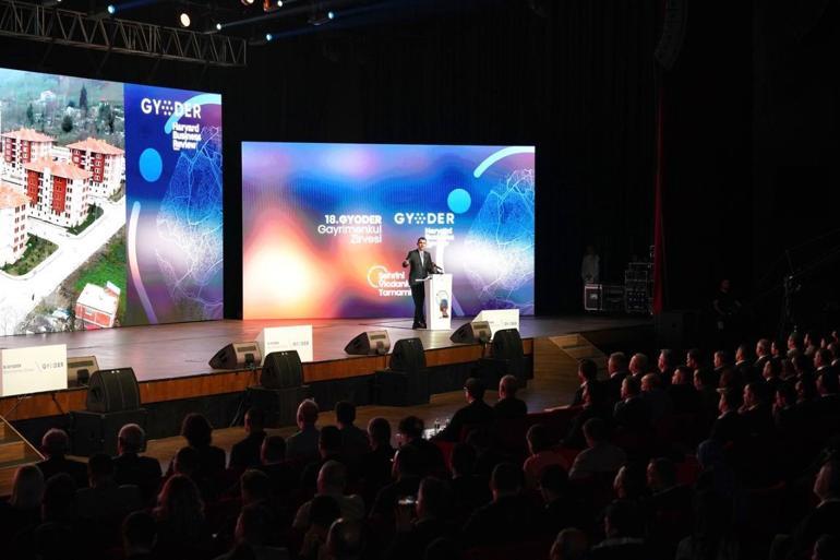 18.si düzenlenen GYODER Gayrimenkul Zirvesi’nin iyi olmasını dileyen Kurum, sarsıntı bölgesinin tekrar inşa ve ihya süreci için yapılan çalışmaların anlatıldığı Umut Çizgisi Belgeselinin imalinde emeği geçenleri kutladı.
