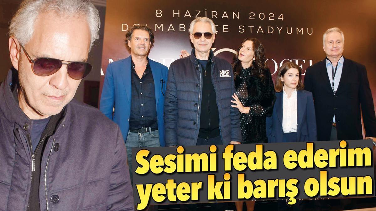 Dünyanın içinde bulunduğu durum hakkında niyetleri de sorulan Andrea Bocelli, barış bildirileri verdi: “Müzik insan ruhuna hitap ediyor, etkiliyor da. Kendi sesimle, kendi müziğimle dünya çapındaki şimdiki koşulların daha da güzelleşmesine bir katkım olursa ne keyifli bana. Ben sesimden feragat edebilirim, kâfi ki barış tesis edilsin. Savaş çok aptalca bir şey. Müthişliğini bir yana bırakın, en aptalca şey, insanlığın yanılgısı.”