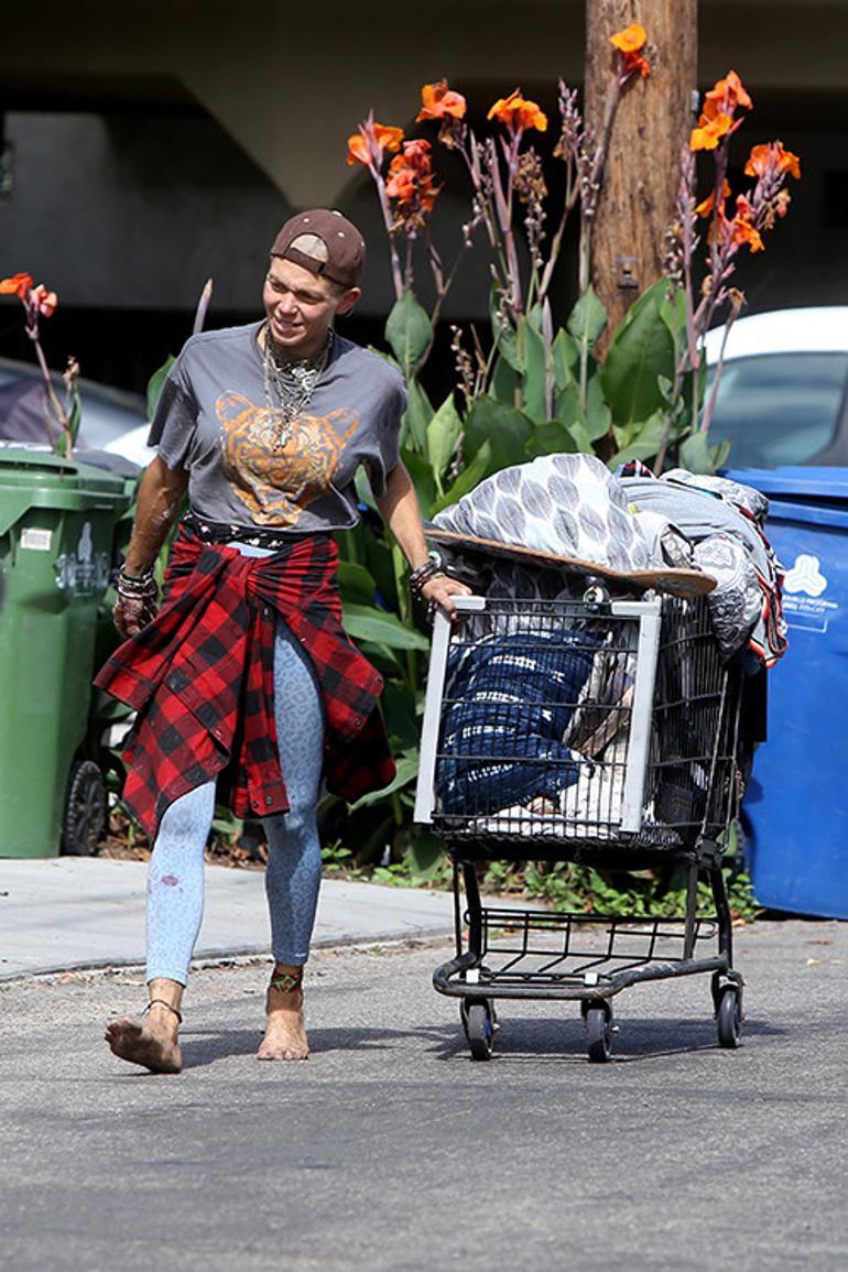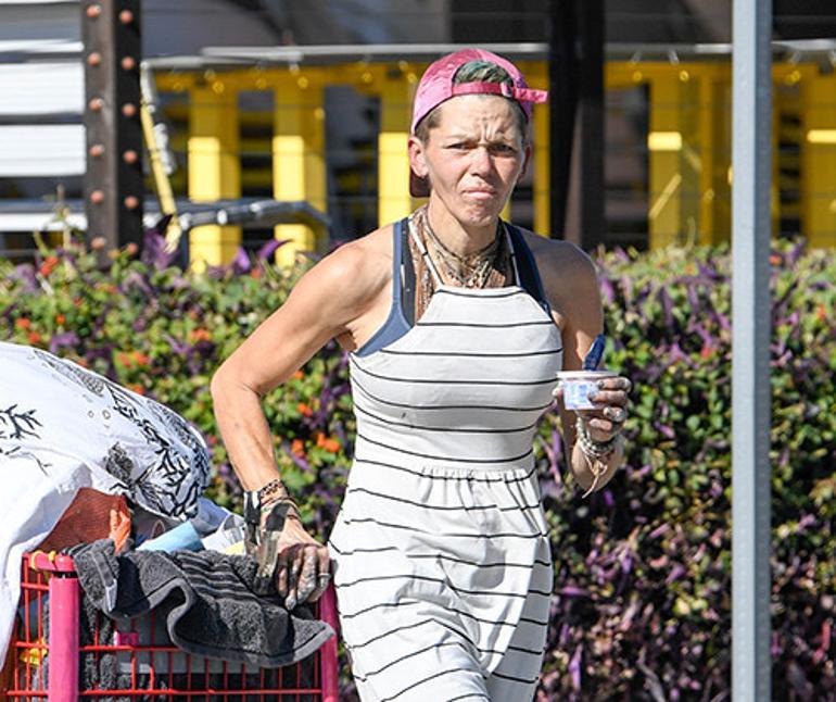 Willison, geçtiğimiz günlerde yeniden sokaklarda ünlü market otomobiliyle dolaşırken görüntülendi. Bu kere üzerinde beyaz üzerine siyah ince çizgili askılı bir elbise vardı. Solmuş siyah bir kot pantolon, tıpkı renk çoraplar ve parmak ortası terlikleriyle yeniden sokaklarda bir şeyler arıyordu.