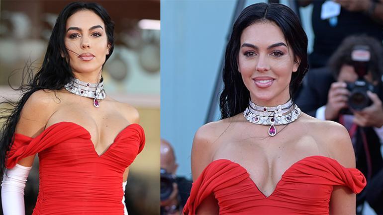 Georgina Rodriguez en son Venedik Sinema Şenliği’nin kırmızı halısındaki bu dekolteli giysisiyle gündeme gelmişti