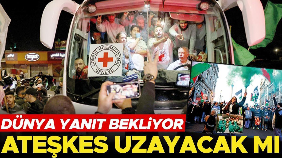 İsrail ile Hamas ortasındaki insani ateşkesin son gününe girildi. ABD, Katar ve Mısırlı yetkililerin ateşkesi uzatmak için diplomatik eforları sürüyor. Hamas dün yaptığı açıklamada, çatışmalara “insani ara” verilmesini içeren mutabakatı, daha fazla esirin özgür bırakılması doğrultusunda uzatmaya çalıştıklarını bildirirken, İsrail’de gerek ordu gerekse siyasi yetkililerin yaptığı açıklamalardan olumlu bir sinyal gelmiyor. Dün, dünya kentlerinde on binlerce kişi ise kalıcı ateşkes davetiyle protesto şovları düzenledi. İngiltere’nin başşehri Londra ve Avustralya’nın Melbourne kentinde on binlerce kişi ateşkes davetiyle sokaklara indi.