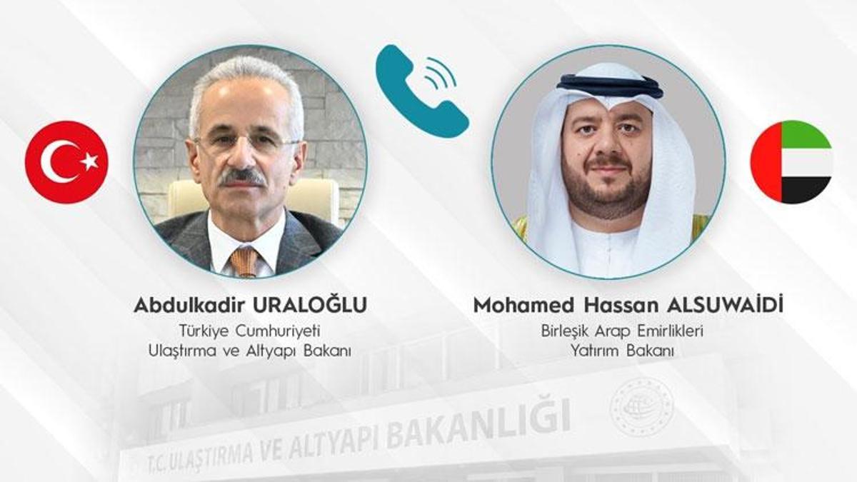 Bu çerçevede Ulaştırma ve Altyapı Bakanı Abdulkadir Uraloğlu ile Birleşik Arap Emirlikleri Yatırım Bakanı Sayın Mohamed Hassan Alsuwaidi ortasında gerçekleşen telefon görüşmesinde, ulaştırma koridorları için kıymet arz eden yatırımlar ve çok taraflı ulaştırma siyasetleri da ele alınan husus başlıkları arasında yer aldı.