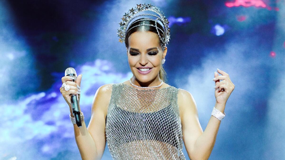 Ünlü sanatçı, Kuruçeşme Açık Hava Sahnesi için ünlü modacı Züleyha Kuru imzalı 2 farklı sahne kostümüyle ışıl ışıl parladı. Sahneye birinci adımını taşlı crop bluzu ve siyah pantolonuyla atan Bengü, ilerleyen dakikalarda da şıklığına şıklık kattı. Fileden oluşan tekrar parlak bir kıyafet tercih eden Bengü, tam 1 haftada hazırlanan gösterişli tacıyla kombinini tamamladı.