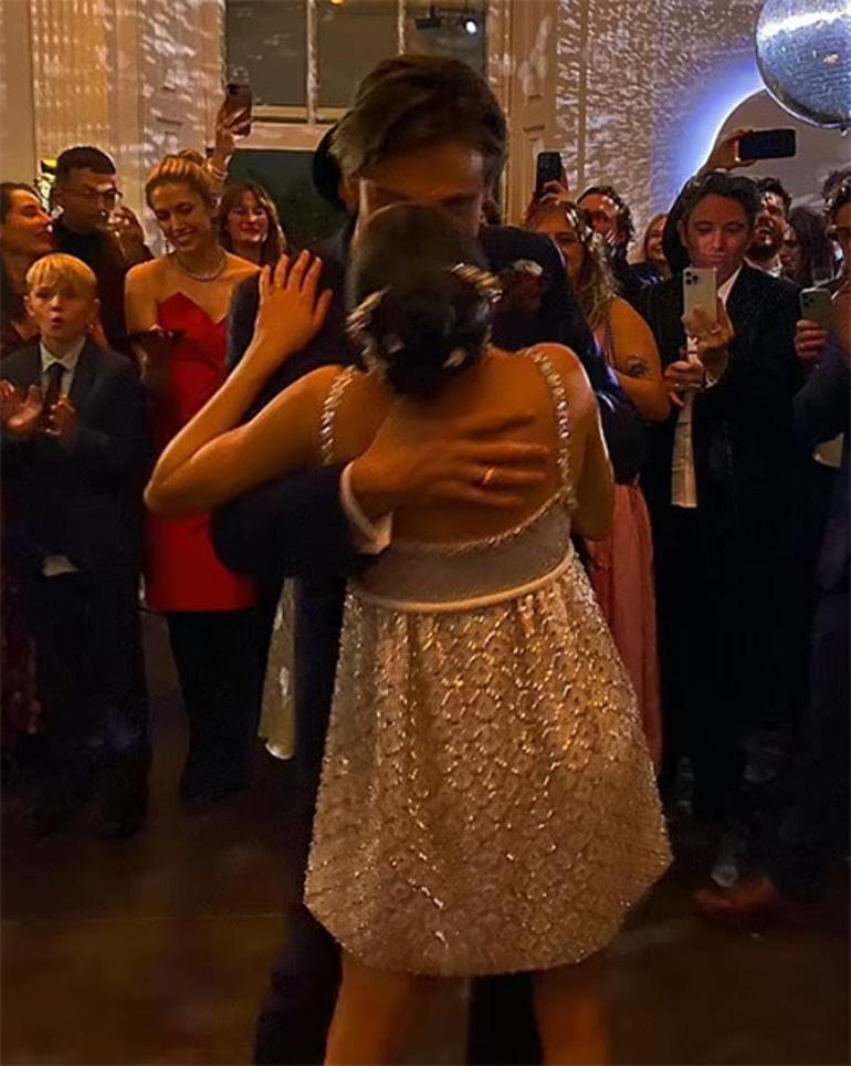 Nikahın akabinde gecenin ilerleyen saatlerinde de bu kere pırıltılı küçük bir elbise giydi genç gelin. O elbise de yeniden pırıltılı detaylarla süslüydü ve askılıydı.
