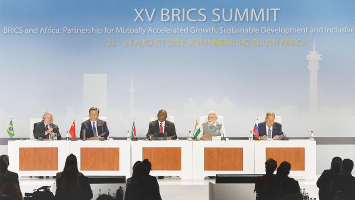 15’inci sefer bir ortaya gelen Brezilya, Rusya, Hindistan, Çin ve Güney Afrika (BRICS) başkanları; Suudi Arabistan, Birleşik Arap Emirlikleri, İran, Mısır, Arjantin ve Etiyopya’nın 1 Ocak 2024 prestijiyle topluluğa üye olarak kabul edilmesinde mutabık kaldı.