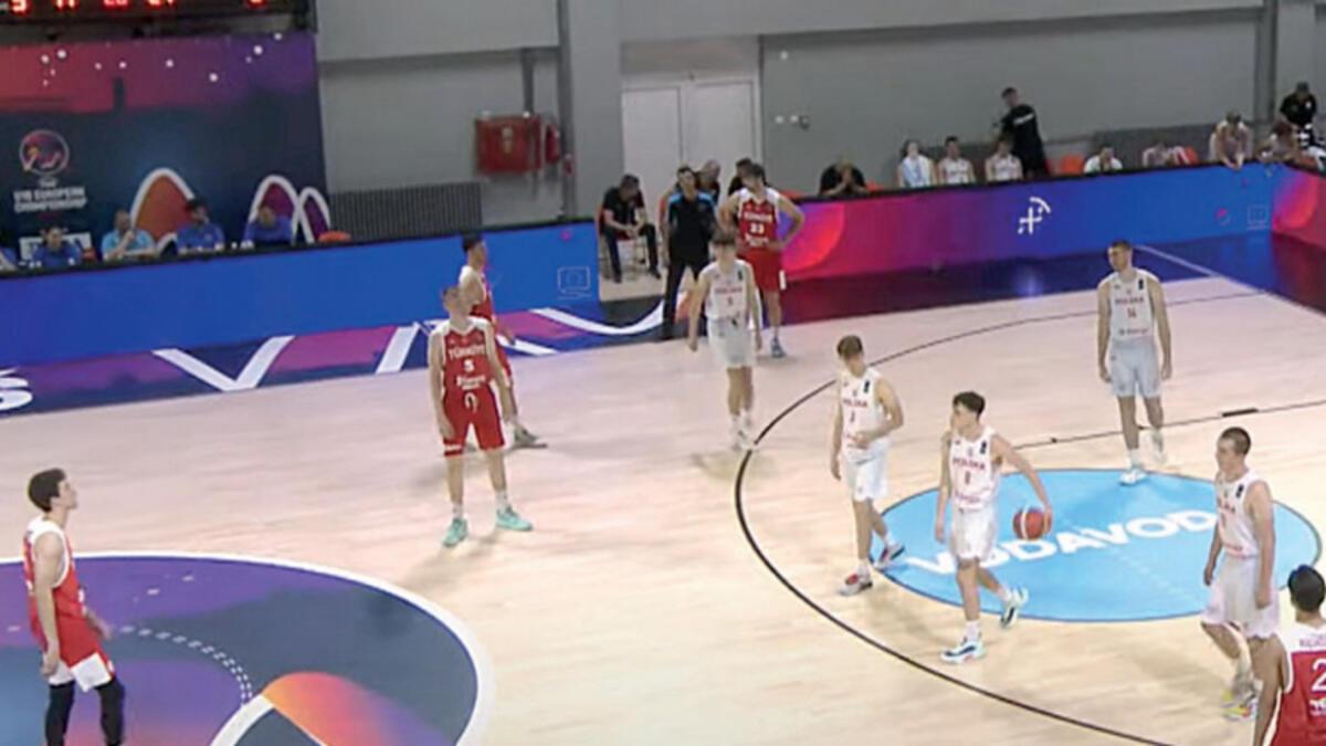 Sırbistan’ın Niş kentinde başlayan 2023 FIBA U18 Avrupa Basketbol Şampiyonası’nda B Grubu’nda yer alan Ulusal Ekibimiz birinci maçında Polonya’yı 78-63 mağlup ederken müsabakaya son 5 dakikada iki kadronun ortaklaşa gerçekleştirdiği protesto damga vurdu. Mika Antic Spor Salonu’nun yeri ağır yağışa bağlı tavandan damlayan sular ve makus havalandırma nedeniyle kayganlaşınca iki ekip da sıkıntı anlar yaşadı. Maç boyunca çok sayıda oyuncu kayıp düştü.