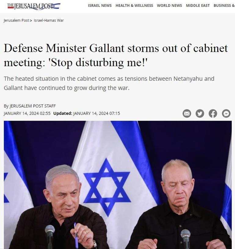 Bu gelişmeyi ‘Savunma Bakanı Gallant kabine toplantısını terk etti’ başlığı ile duyuran Jerusalem Post ‘Kabinedeki gergin durum, Netanyahu ile Gallant ortasındaki tansiyonun savaş sırasında artmaya devam etmesiyle ortaya çıktı’ yorumunda bulundu.