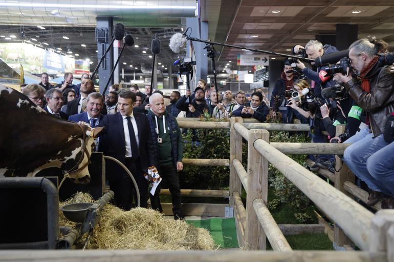 Macron, “Bunu tüm çiftçiler için söylüyorum. Stantlara ziyan vererek hiçbir meslektaşınıza yardım etmiyorsunuz, aileleri buraya gelmekten korkutarak hiçbir meslektaşınıza yardım etmiyorsunuz” tabirlerini kullandı.