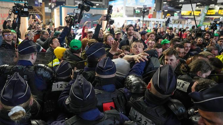 Fransız çiftçilerin tarım siyasetlerine karşı isyanı sürüyor. Fransız çiftçiler, Cumhurbaşkanı Emmanuel Macron’un başşehir Paris’te katıldığı Memleketler arası Tarım Fuarı’na açılış öncesi baskın gerçekleştirdi. Barikatları aşmayı başaran çiftçilerle Fransız polisi karşı kaşıya geldi.
