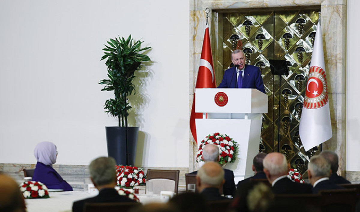 Erdoğan, dünyanın fırtınalı sularda seyrettiği günlerde altyapıyı, ekonomiyi, diplomasiyi, orduyu ve savunma sanayisini güçlendirerek, milli birliği tahkim ederek Türkiye Yüzyılı’na hazırlanıldığını belirtti.