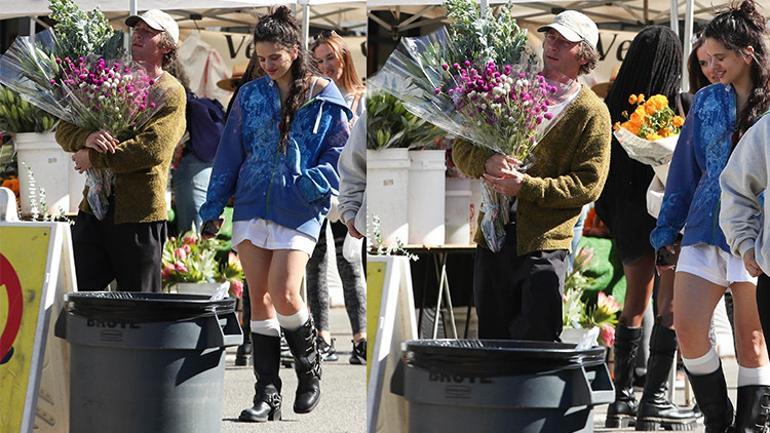 Jeremy Allen White ünlü müzikçi Rosalia’yle çıktığı pazar gezintisinde ona kucak dolusu çiçek aldı