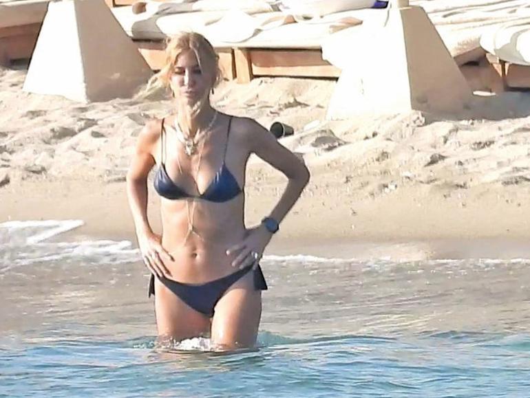 Renkli bikinisiyle uzunluk gösterdiği plajda ilgi odağı olan Demet Özdemir, denize ablasıyla birlikte girdi.(Umut ÜNVER)