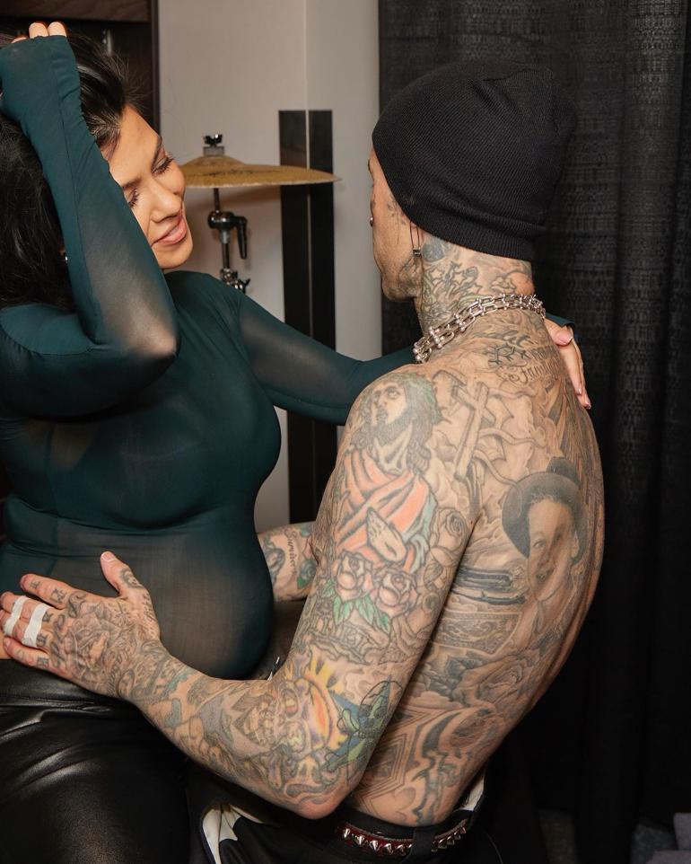 Korutney Kardashian geçen yıl evlendiği Travis Barker’dan doğacak dördüncü çocuğunun haberini kocasının konserinde havaya kaldırdığı pankara “Travis ben hamileyim!” yazarak duyurmuştu… O sırada aslında Kardashian’ın karnının belirli olmaya başladığı ve ünlü ismin bunu gösteri uğruna yaptığ konuşuldu