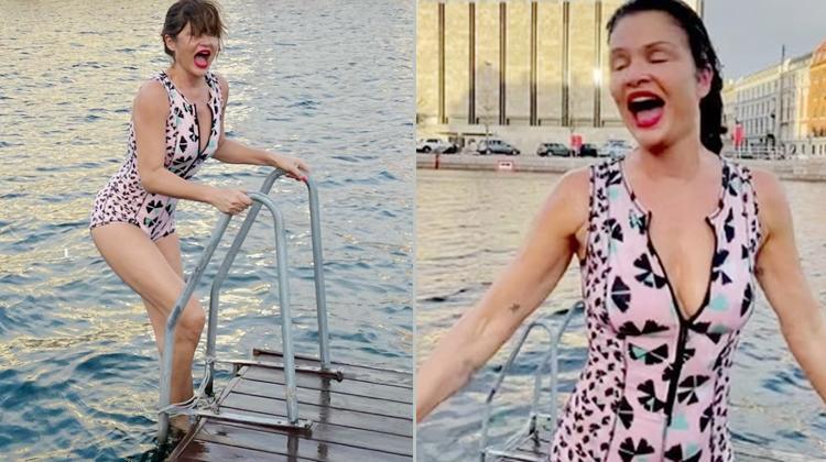 Bir çocuk annesi Christensen, pembe üzerine siyah ve yeşil desenli mayosuyla çığlık atarak buz üzere sulara atladı. Bir müddet yüzen ünlü model, o anlarda çekilen manzaralarını de toplumsal medya hesabından paylaştı.