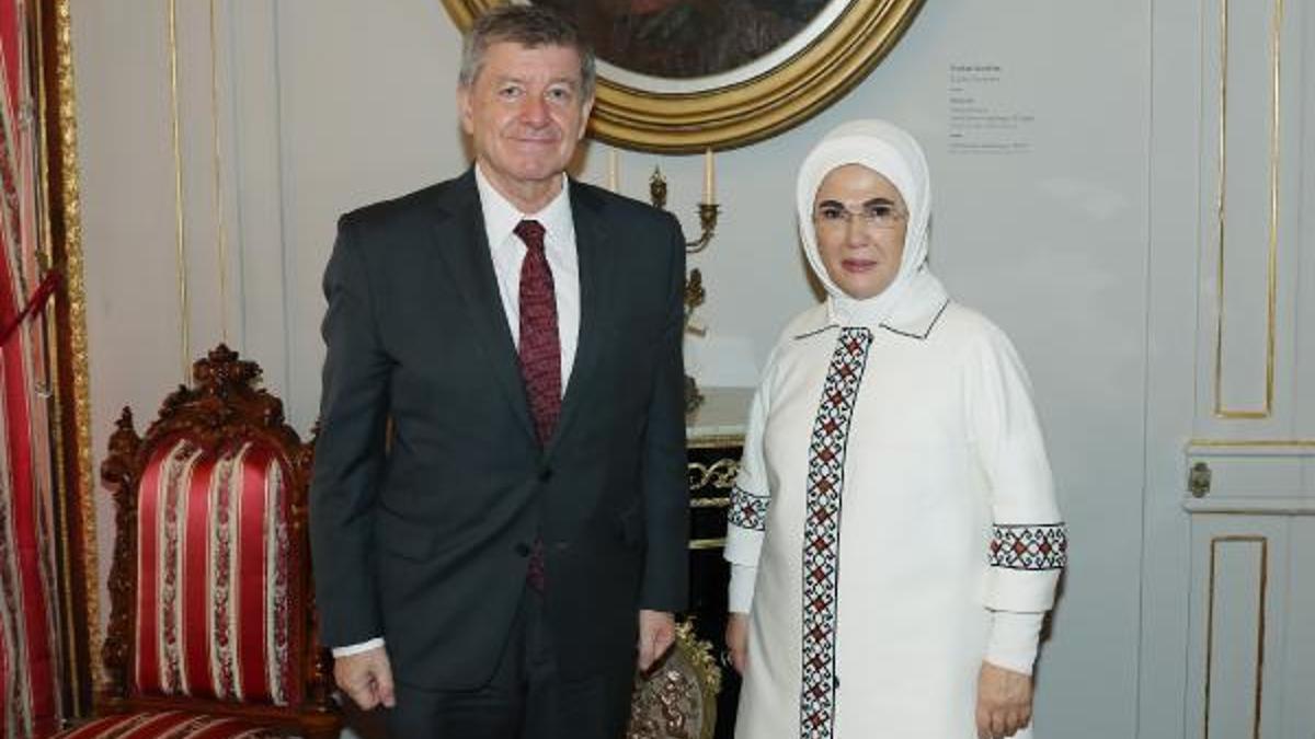 Cumhurbaşkanı Recep Tayyip Erdoğan’ın eşi Emine Erdoğan, ’31 Ekim Dünya Kentler Günü’ programı için İstanbul’da bulunan Birleşmiş Milletler (BM) Siyasetten Sorumlu Genel Sekreter Yardımcısı Guy Bernard Ryder’la Topkapı Sarayı’nda bir ortaya geldi. Görüşmede, BM Siyasetten Sorumlu Genel Sekreter Yardımcısı Ryder, BM Genel Sekreteri Antonio Guterres’in selamını Emine Erdoğan’a iletti. Emine Erdoğan, Sıfır Atık Projesi ile edinilen kazanımların her seviyede güçlendirmesi emeliyle kurulan Sıfır Atık Vakfı’yla ilgili bilgi paylaşımında bulundu.