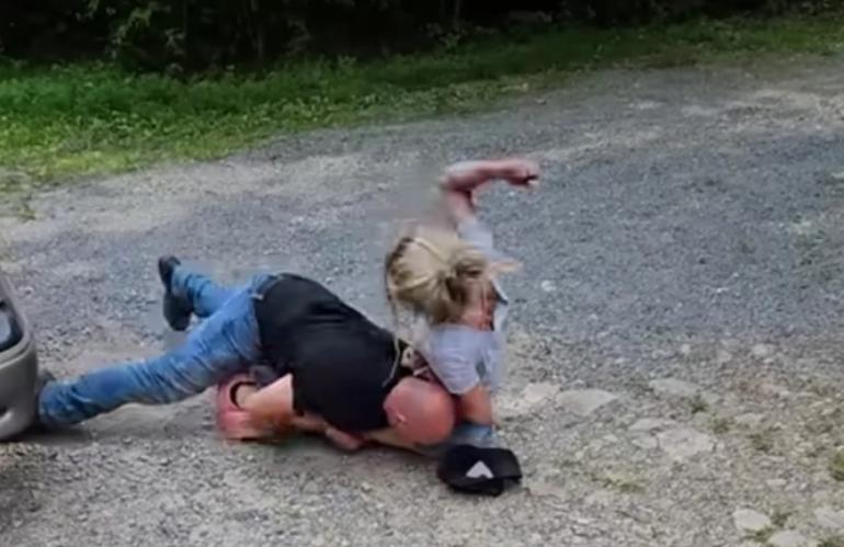 Davis’in yanındaki adam tarafından çekilen ve savcılık tarafından yayınlanan imgelerde üzeri toprakla kaplı ve neredeyse kendinin iki katı büyüklüğündeki adamın elinden kurtulmaya çalışan bayan görülüyor.
