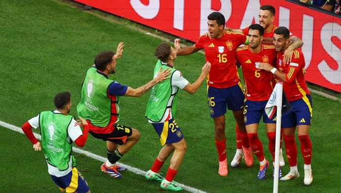 Stuttgart Arena’daki dev maçta İspanya, Almanya’yı 119. dakikada Mikel Merino’nun golüyle 2-1 mağlup ederek yarı finale yükselen ilk takım oldu. İspanya’da sakatlanan Pedri’nin yerine oyuna giren Dani Olmo, 1 gol, 1 asist yaparak maça damgasını vurdu. Boğalarda Dani Carvajal, 120+5’te kırmızı kart gördü.