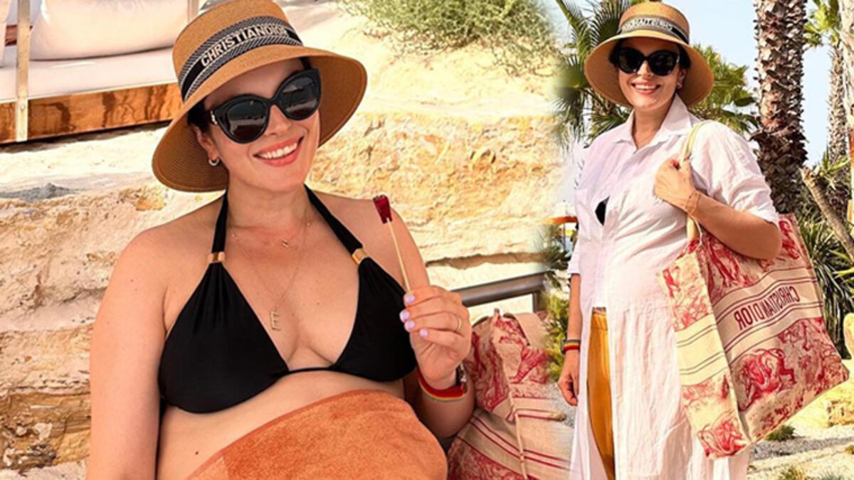 Bir müddettir eşi Mustafa Aksakallı’yla tatilde olan Ezgi Mola, karnı burnunda pozlarını paylaştı. Altı aylık gebe olan ve erkek bebek bekleyen Mola’nın fotoğraflarına beğeni yağdı.
