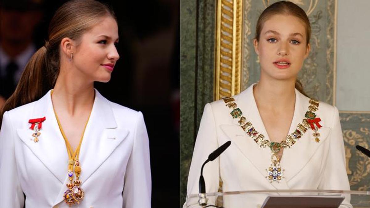 İspanya tahtının birinci sıradaki varisi olan Prenses Leonor, merasim için pak ve yeni bir başlangıcın simgesi olarak beyaz bir pantolon ve beyaz bir ceket giydi. Saçlarını at kuyruğu yapan Leonor, sade bir şıklık içinde yeni hayatının birinci gününü karşıladı.