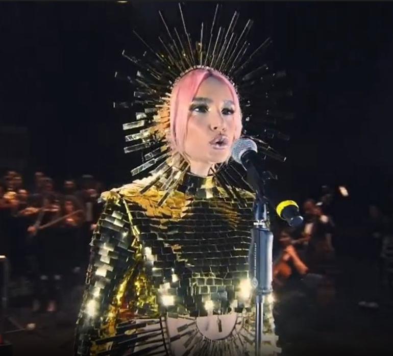 Sanatçının şekli da dikkat çekti. Gülşen’in kıyafetini birtakım toplumsal medya takipçileri ABD’deki Özgürlük Heykeli’ne benzetirken kimileri da beğendi.