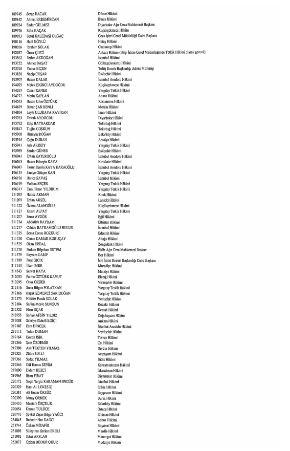 Hakimler ve Savcılar Konseyi’nin (HSK) Resmi Gazete’de yer alan atama kararı yayımlandı. HSK atama listesi şöyle;