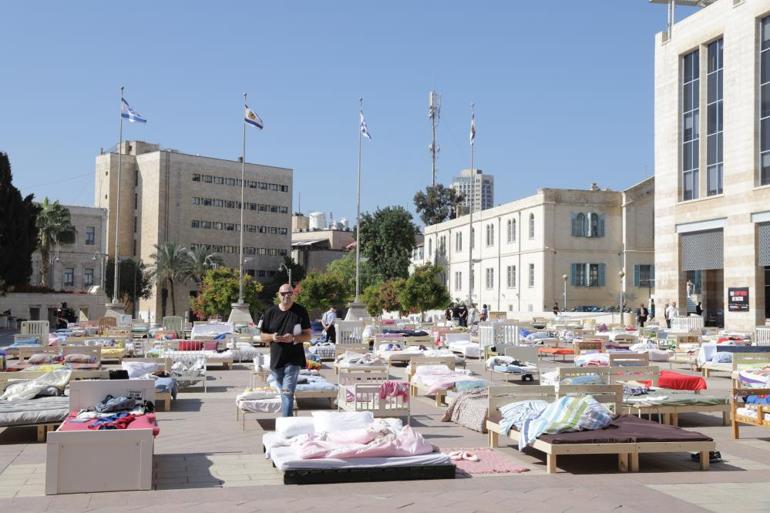 Gazze’ye kaçırılan rehinelerin sayısı kadar yatak yerleştiren protestocular, Gazze’de bulunan rehinelerin fotoğraflarını da yataklara astı. Çok sayıda protestocu, rehinelerin vaktinin tükendiğini göstermek için bir ortaya geldiklerini söyledi.