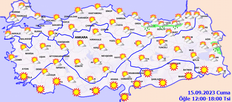 Meteoroloji Yine Müdürlüğü tarafından yapılan son değerlendirmelere nazaran, ülkemizin kuzey ve doğu kısımlarının modüllü, yer yer çok bulutlu, Orta ve Doğu Karadeniz kıyı vilayetlerinin iç kısımları ve Ağrı’nın güney, Van’ın kuzey ve doğu ilçeleri lokal sağanak ve gök gürültülü sağanak yağışlı, öteki yerlerin az bulutlu ve açık geçeceği iddia ediliyor.