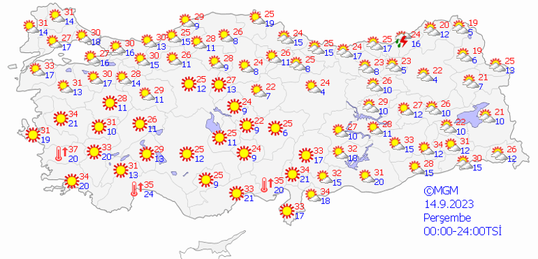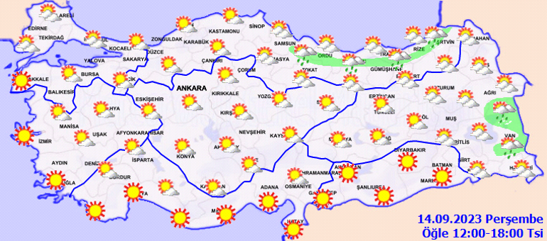 Meteoroloji Yeniden Müdürlüğü tarafından yapılan son değerlendirmelere nazaran ülkemizin kuzeydoğu ve doğu kesitlerinin modüllü, yer yer çok bulutlu, Orta ve Doğu Karadeniz kıyı llerinin iç kesitleri ile Rize, Artvin, Iğdır ve Ağrı ile Van’ın kuzey ve doğu, Hakkari’nin kuzey etraflarının lokal sağanak ve gök gürültülü sağanak yağışlı, öteki yerlerin az bulutlu ve açık geçeceği iddia ediliyor.