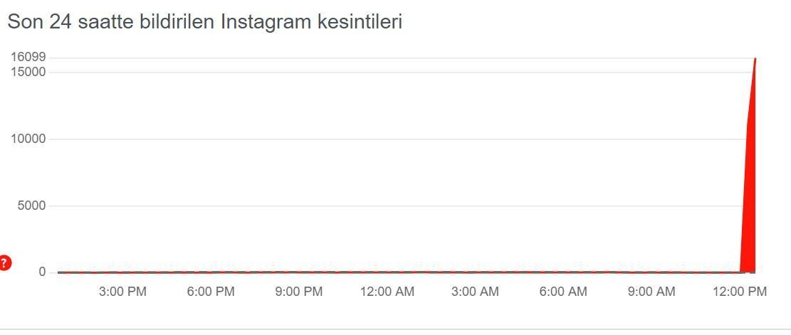 Instagram raporları, saat 12:00’dan itibaren akış yenilemede sorun olduğunu gösteriyor. Üstteki grafik, son 24 saat içinde gönderilen sorun raporlarının, günün saatine nazaran tipik rapor hacmiyle mukayeseli görünümünü gösterir.