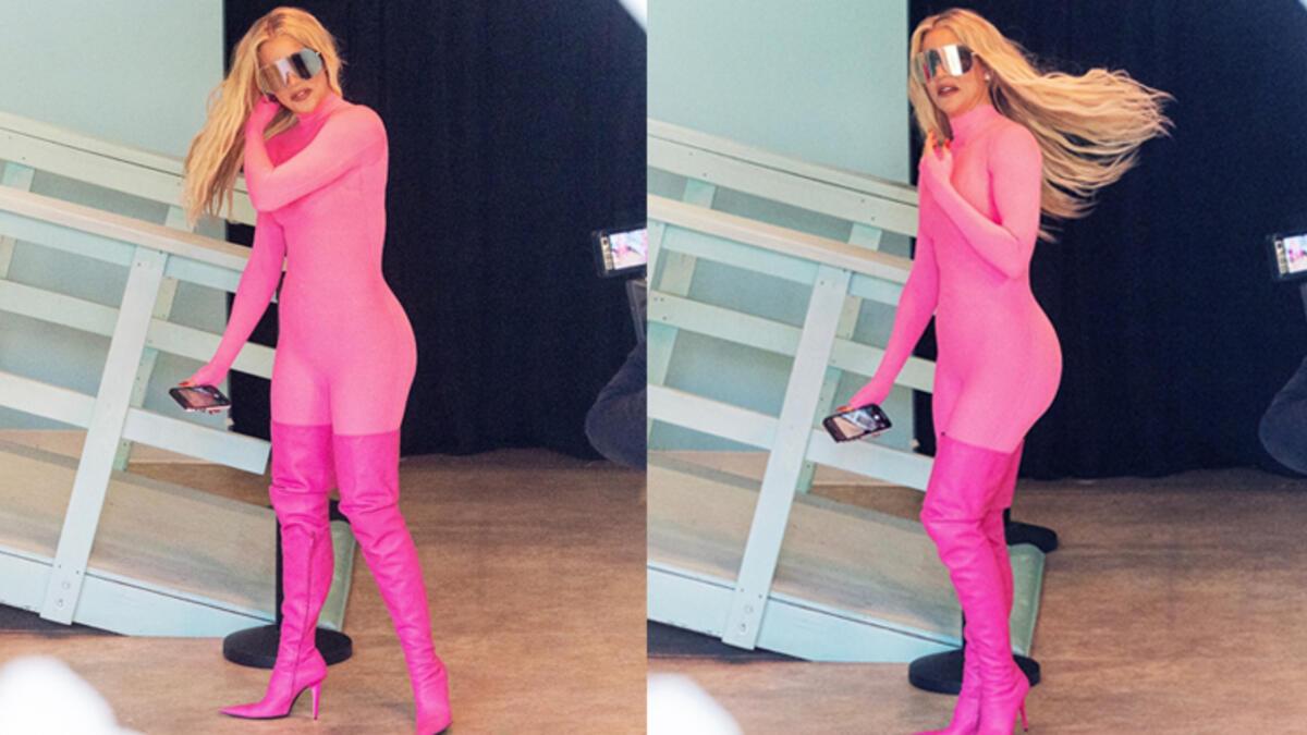 Parti öncesi Kim ve Khloe Kardashian, buluştuklarında üzerlerindeki pembe renkler, birinci bakışta merak uyandırmıştı.