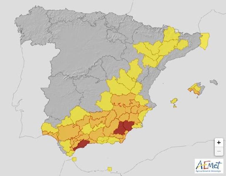 İspanya’da tesirli olan çok sıcak hava dalgası sebebiyle birtakım bölgelerde sıcaklık 43 dereceye ulaştı. Başşehir Madrid dahil ülkenin birtakım bölgelerinde sıcaklık 40 dereceye ulaştığı için turuncu alarm verilirken 43 dereceyi gören Teruel, Zaragoza ve Albacete eyaletlerinde kırmızı alarm verildi.