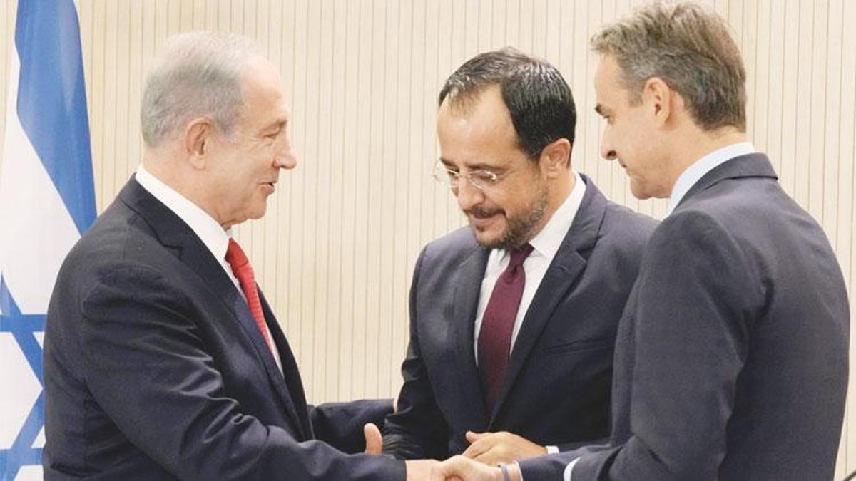 Doğu Akdeniz’deki güç kaynaklarını, Türkiye’yi dışlayarak münhasır ekonomik bölge mutabakatlarıyla paylaşmak uğraşına giren İsrail, Yunanistan ve Kıbrıs Rum idaresi, başkanlar düzeyinde 9’uncu buluşmalarını Lefkoşa’da gerçekleştirdi. İsrail Başbakanı Binyamin Netanyahu, Yunanistan Başbakanı Kiriakos Miçotakis ve Rum önder Nikos Hristodulidis, klâsik el ele fotoğraf çekimi yaptı, deniz altındaki doğalgaz kaynaklarıyla ilgili işbirliklerini daha artırma kararı aldıklarını açıkladı.