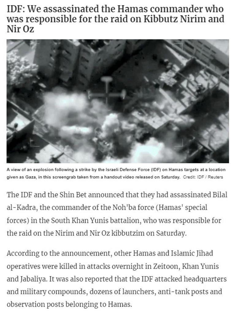 İsrail basını bu kişinin Güney Han Yunis taburundaki Noh’ba kuvvetinin (Hamas’ın özel kuvvetleri) kumandanı Bilal el-Kadra olduğunu yazdı.
