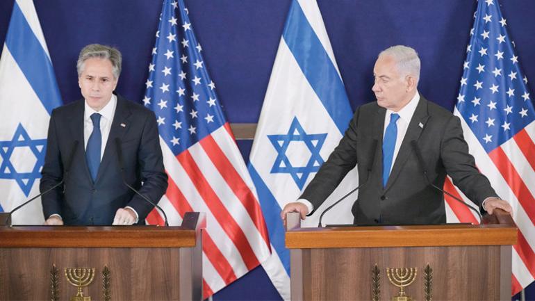 Hamas hücumlarının çabucak akabinde İsrail’e takviyesini açıklayan ve bölgeye uçak gemisini gönderen ABD idaresi, çatışmayı denetim altında tutmayı amaçlayan bir adım daha attı. ABD Dışişleri Bakanı Antony Blinken dün İsrail’e giderek Başbakan Binyamin Netanyahu ile bir ortaya geldi. İsrail’den sonra Ürdün’e geçecek ve burada Kral Abdullah ve Filistin İdaresi Lideri Mahmud Abbas ile görüşecek Blinken, İsrail’e dayanak iletisini yineledi.