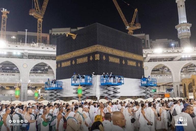 Kabe’de hac ibadeti için hazırlıklar sürüyor. Mescid-i Nebevi ve Mescid-i Haram İşleri Başkanlığı, Hac mevsiminin başlaması ile birlikte her yıl yapılan uygulama kapsamında Kabe’nin örtüsünü alt kısmından 3 metre üst kaldırdı.