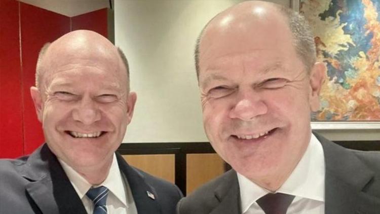 ABD’li Senatör Chris Coons ve Olaf Scholz, dün Washington’daki görüşmelerinin akabinde çektikleri selfieyi toplumsal medya hesaplarında birlikte paylaştı.