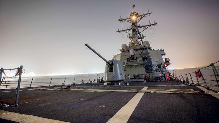 Açıklamada, “Güney Kızıldeniz’ndeki milletlerarası nakliye yollarına fırlatılan 2 balistik füzenin devriye gezen USS Laboon savaş gemisi tarafından engellendiği belirtildi.