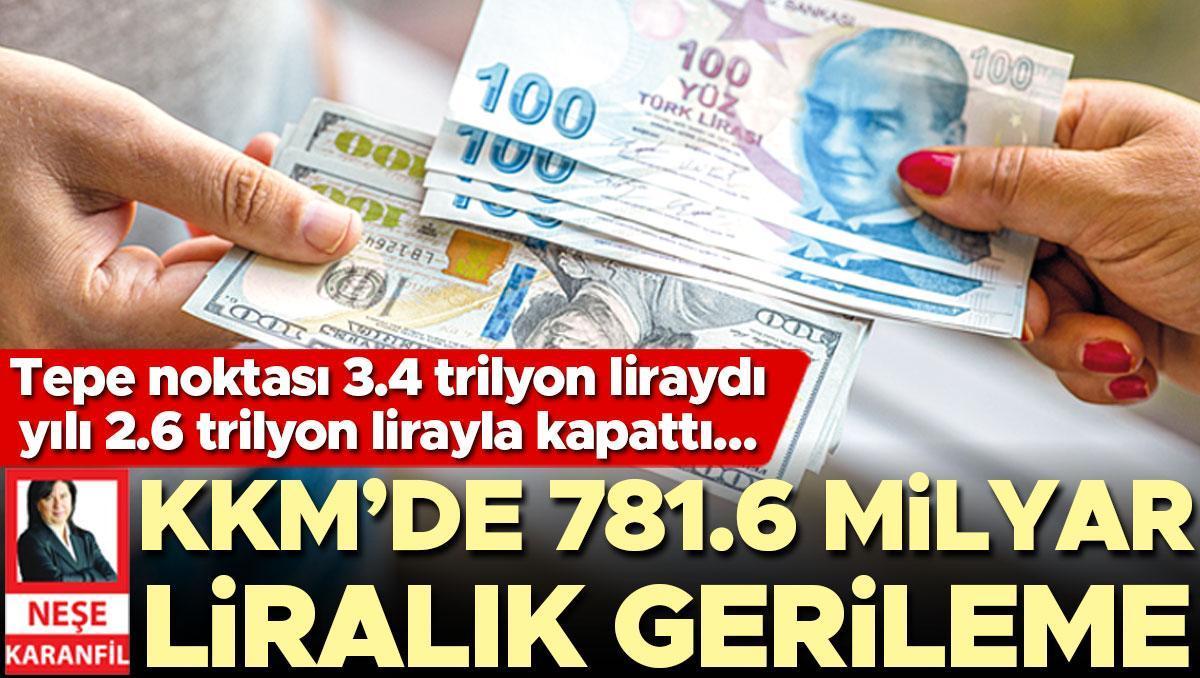 KKM’nin cazibesini azaltmak için birinci adım temmuz ayında geldi. Temmuz ayında yüzde 15 karşılık oranı getirildi. Ağustos ayında yabancı para mevduattan KKM’ye dönüşüm maksadına son verildi. Daha sonra zarurî karşılık oranları vadeye nazaran farklılaştırıldı. 1 Eylül tarihli haftada 3.3 trilyon lira olan KKM hesapları, 6 Ekim haftasında 3.2 trilyon liraya geriledi. 3 Kasım tarihli haftada 3 trilyon liranın altına düşen KKM hesapları, 2.9 trilyon lira oldu. 1 Aralık haftasında ise 2.7 trilyon liraya düştü. Aralık ayında KKM hesaplarındaki gerileme suratı düştü. 15 Aralık haftasında 2.68 trilyon lira olan KKM hesapları, 22 Aralık haftasında 2.65 trilyon lira oldu. 2023 yılının son haftası 29 Aralık haftasında ise KKM hesapları 2 trilyon 626 milyar liraya geriledi.