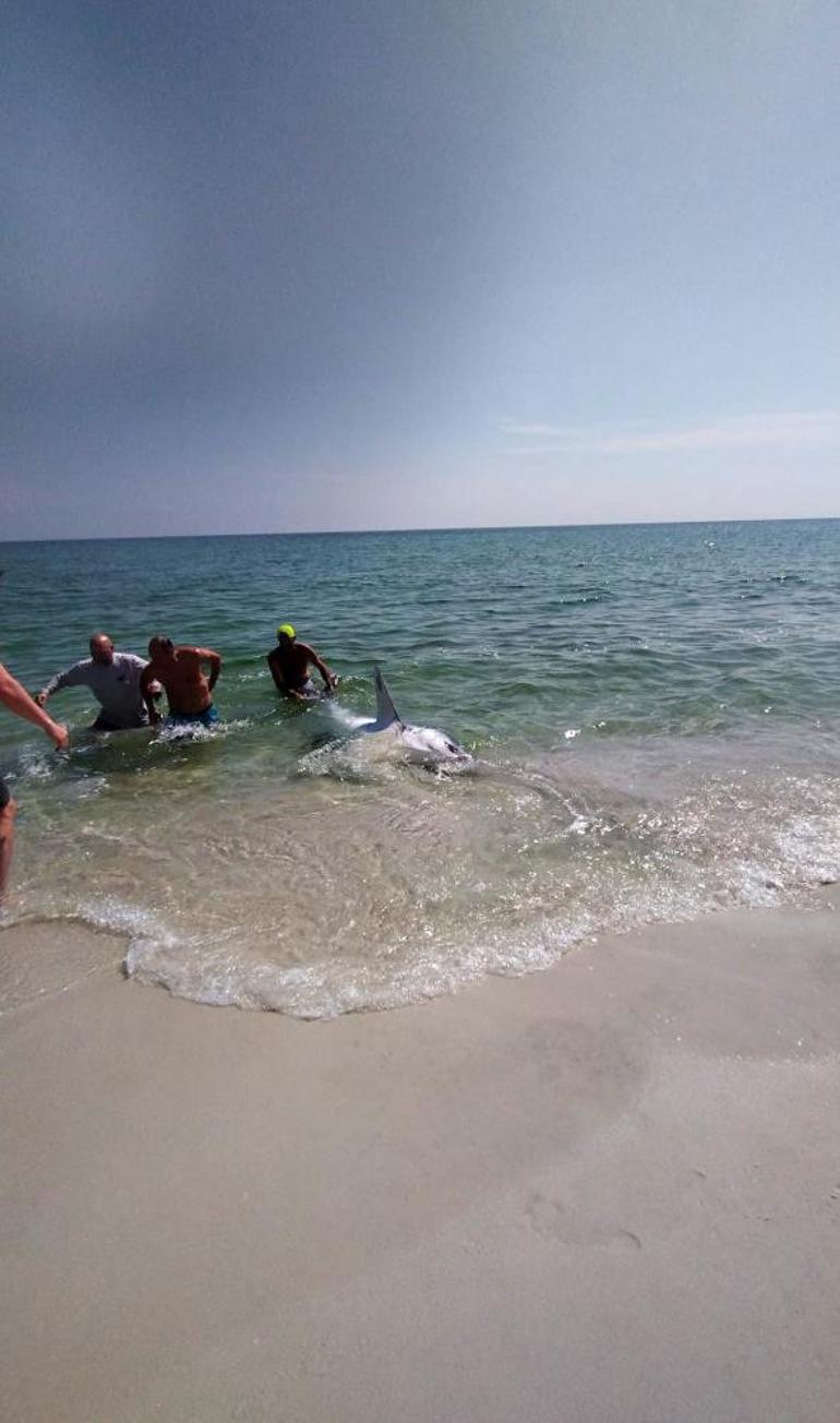 ABD’nin Florida eyaletine bağlı Escambia County’de kıyıya vuran camgöz köpek balığı, plajda denize girenler tarafından kurtarıldı.