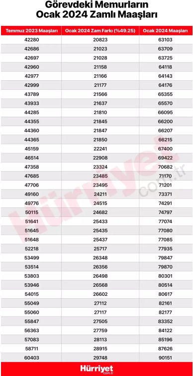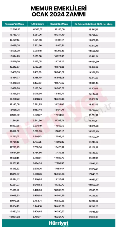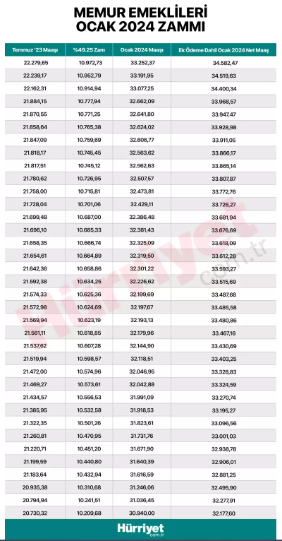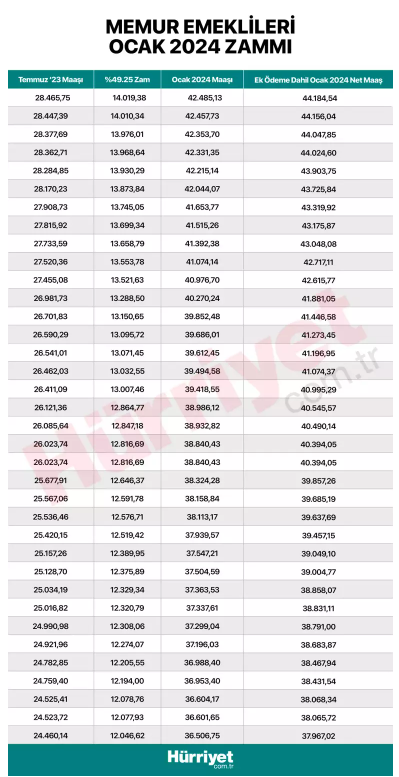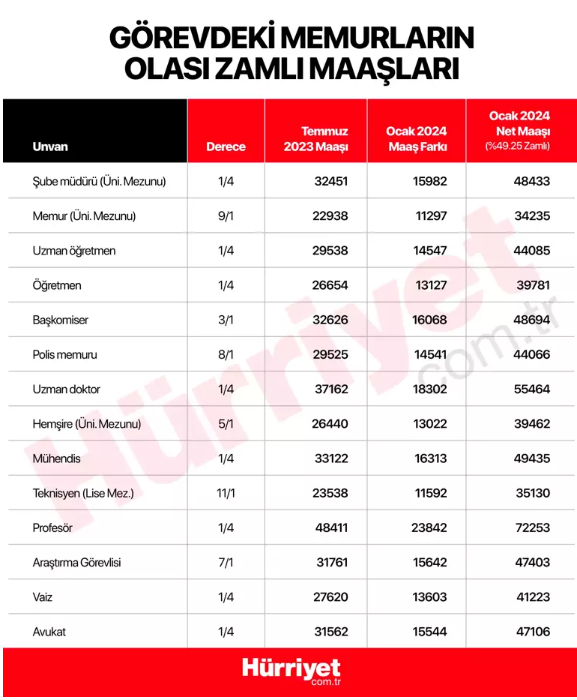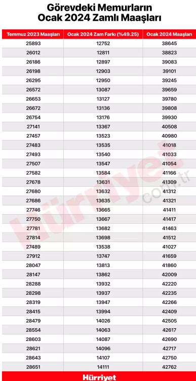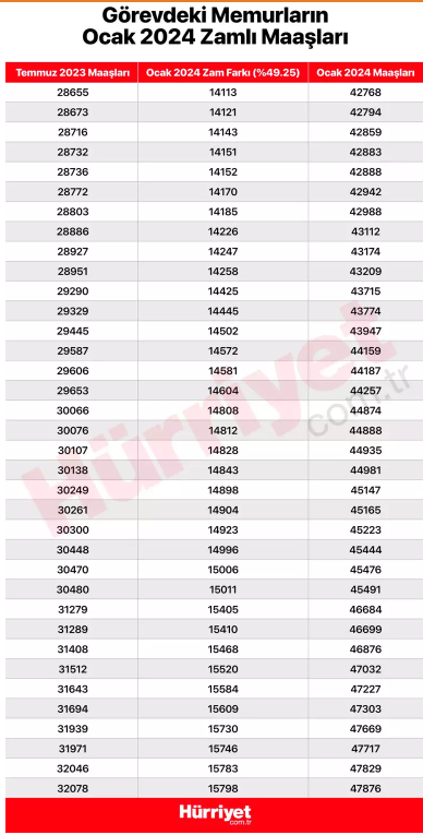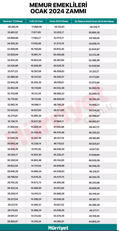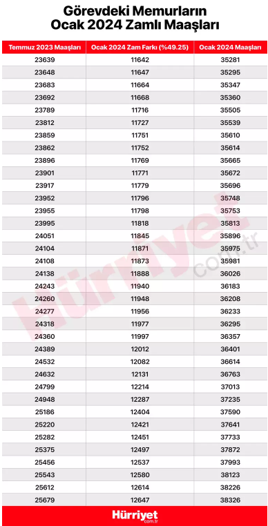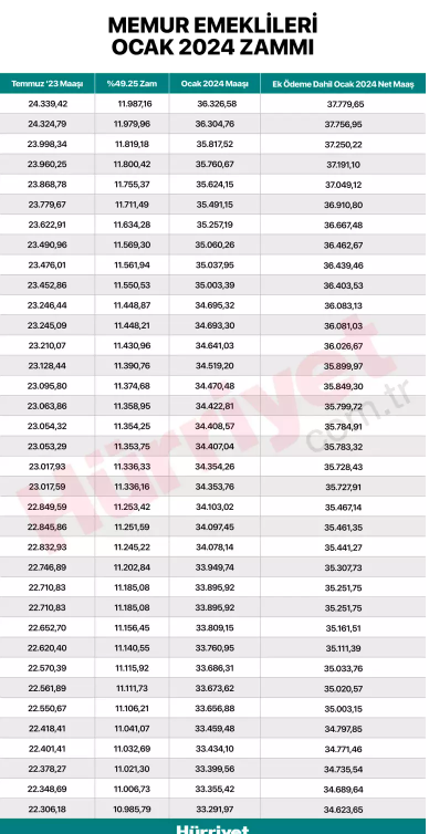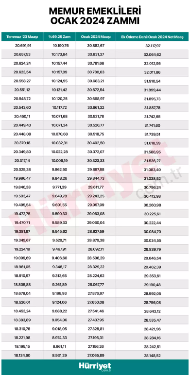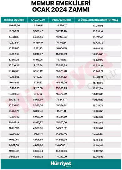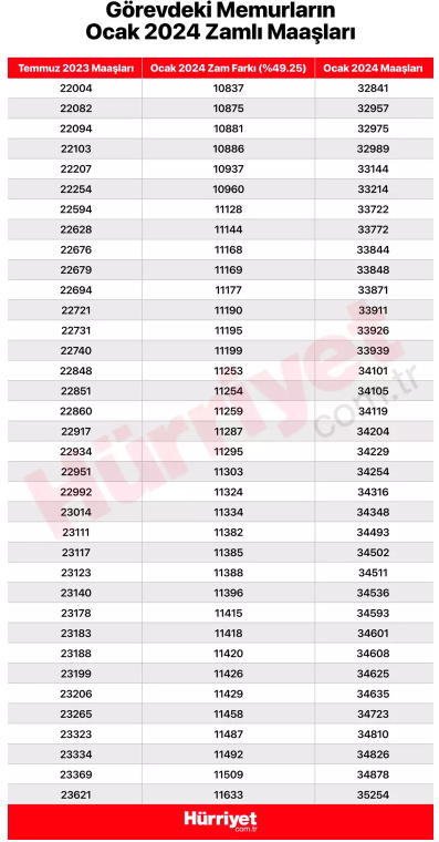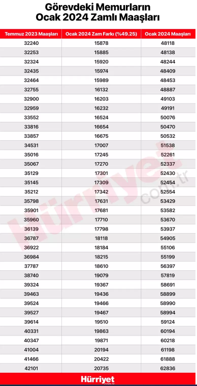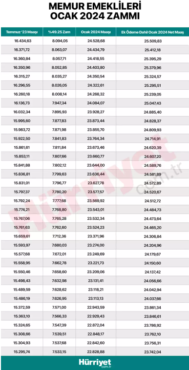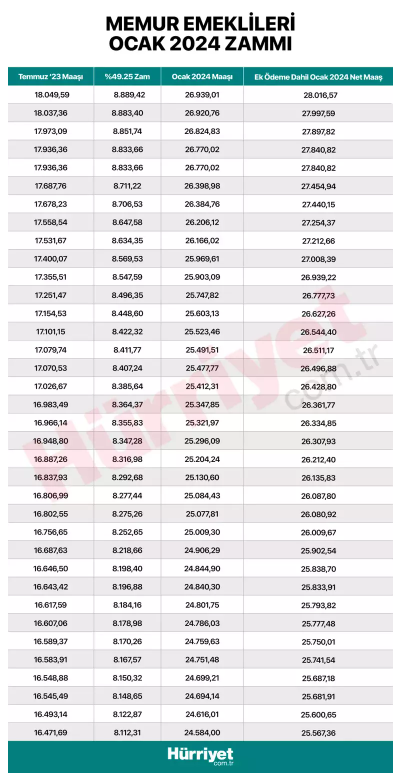 MEMUR VE MEMUR EMEKLİLERİNİN OCAK-TEMMUZ 2024 ARTIRIMLI MAAŞLARI