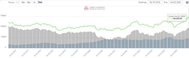 Türkiye ekonomisindeki yükselişin öncü göstergelerinden olan ‘nın brüt rezervlerindeki yükseliş devam ediyor. Her hafta yeni rekor kıran brüt rezervleri bu hafta da 145,4 milyar dolara yükseldi.