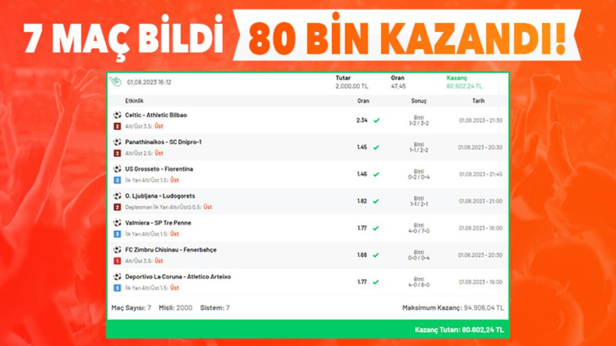 ‘’Süper Oran’’ bülteninde yer alan ‘’FC Zimbru Chisinau – Fenerbahçe’’ müsabakasına 3.5 Üst tercihinde bulunan üye, maçın birinci yarısında gol çıkmasa da ikinci yarıda Fenerbahçe’nin bulduğu 4 gol ile bu çabayı de kazanan maçlar ortasına ekledi.